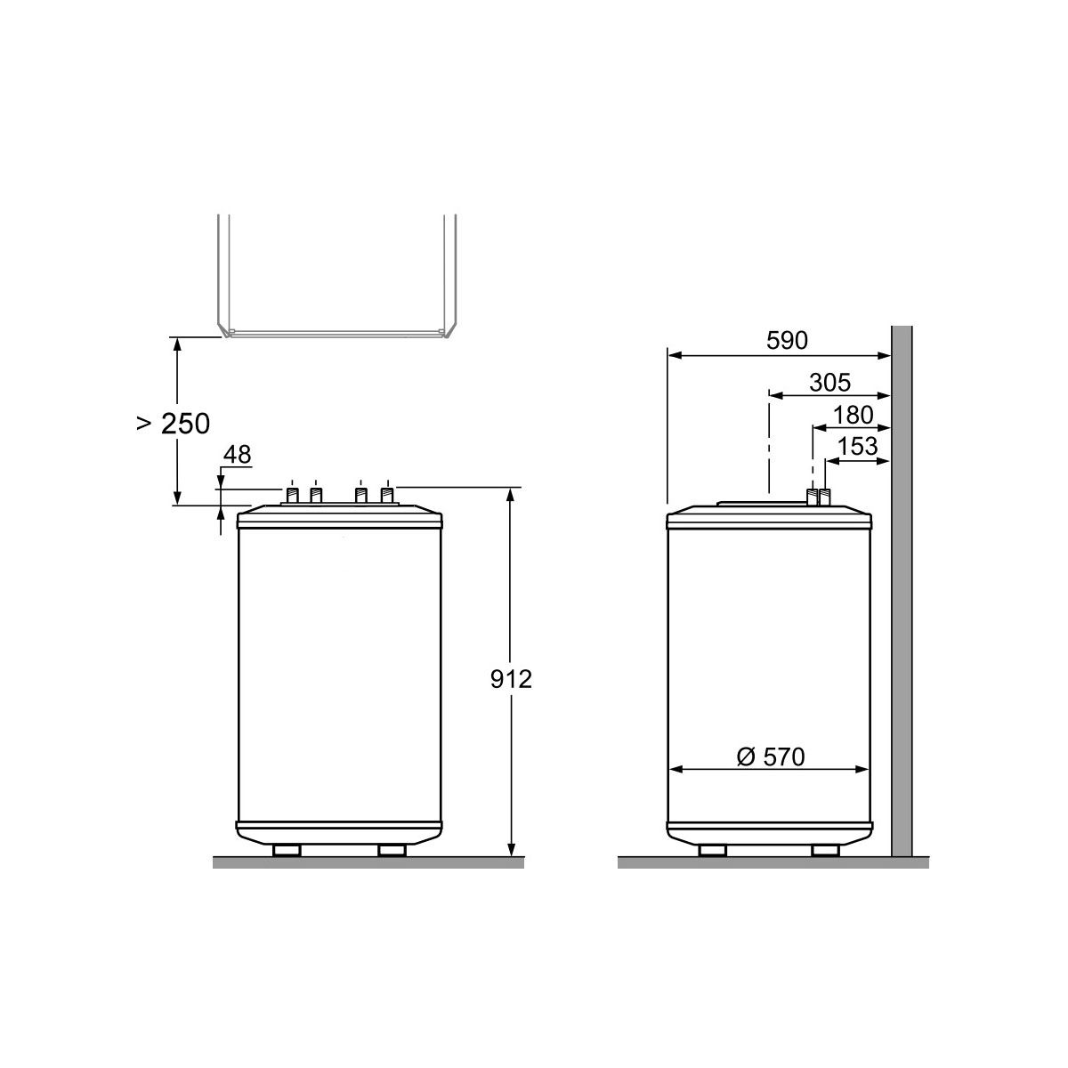 Abmessungen BxHxT 570 x 913 x 570 mm