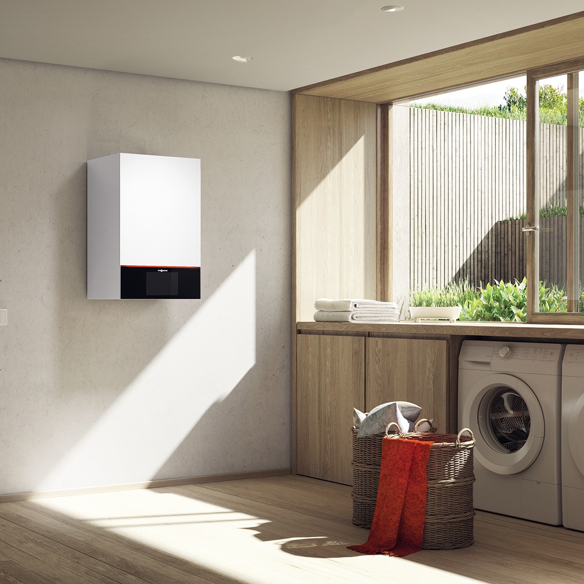 - digitale Kesselkreisregelung mit 7-Zoll-Farb-Touchdisplay für witterungsgeführten Betrieb und integrierter WLAN-Schnittstelle für Bedienung und Service über Viessmann Apps