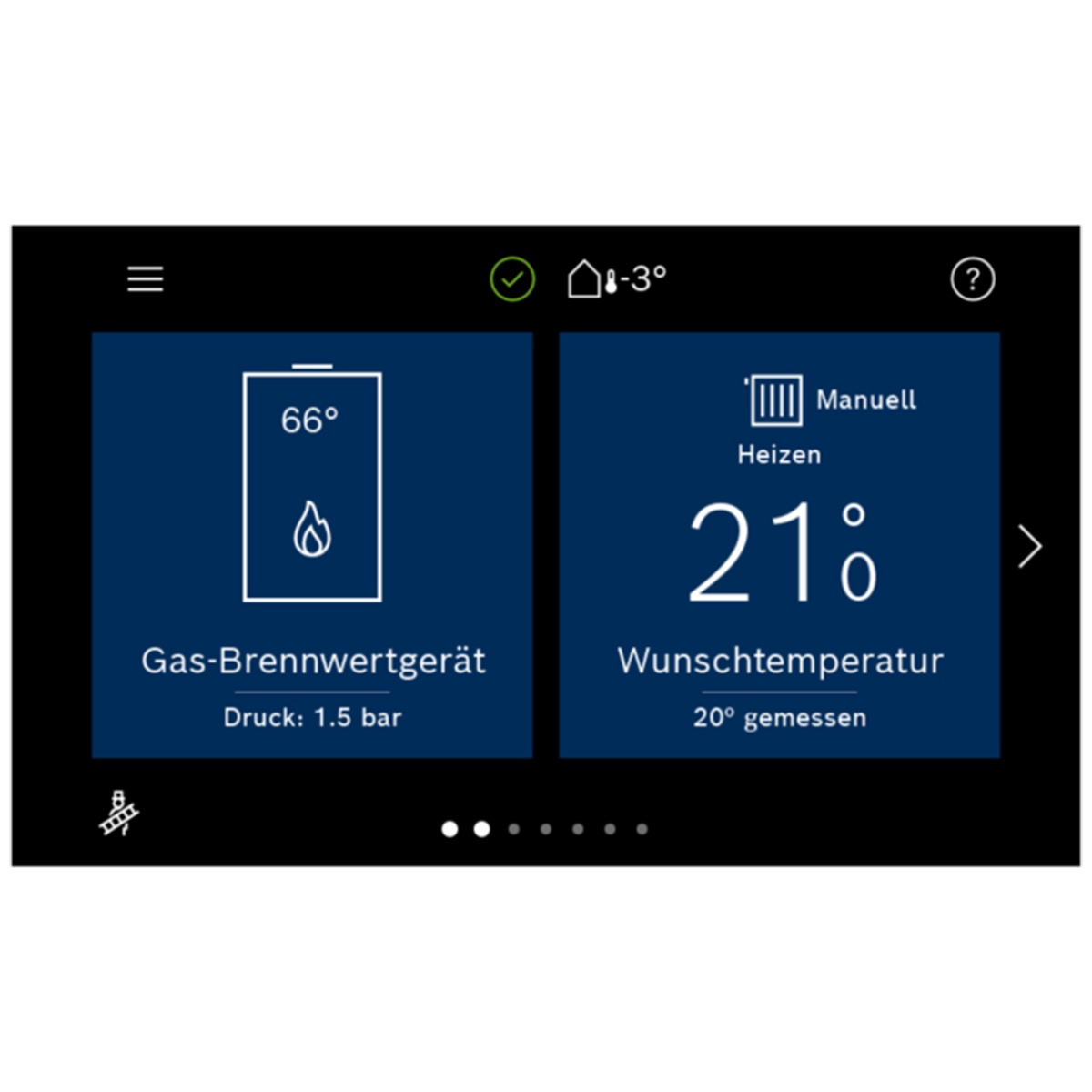 - zentrale Bedienung für Gas-Brennwertgerät sowie Heizkreis, Warmwasser, solar, Frischwasserstation, Lüftung