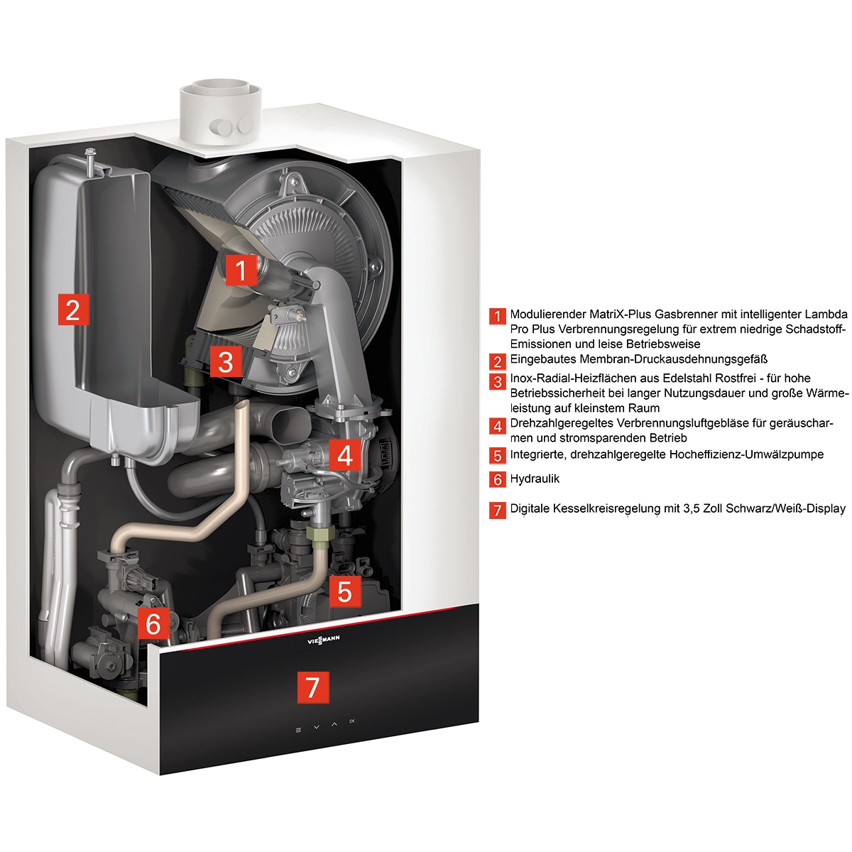 - 1 x Viessmann Vitodens 200-W Gas-Brennwerttherme B2HH 2,5-19kW
