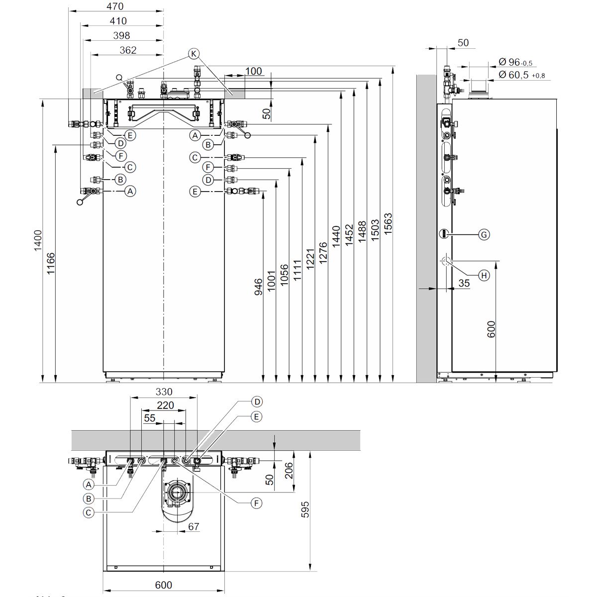 - Gasanschlussdruck zul. max. Erdgas: 25,0 mbar / 2,5 kPa