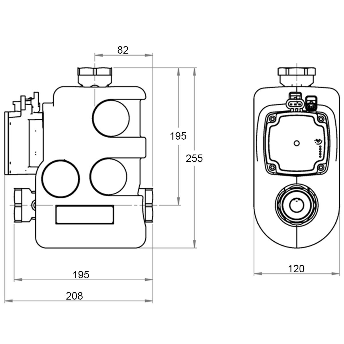 - kompakte Einheit mit integrierter Hocheffizienzpumpe, thermischen Ventil und zwei Ventilanschlüsse