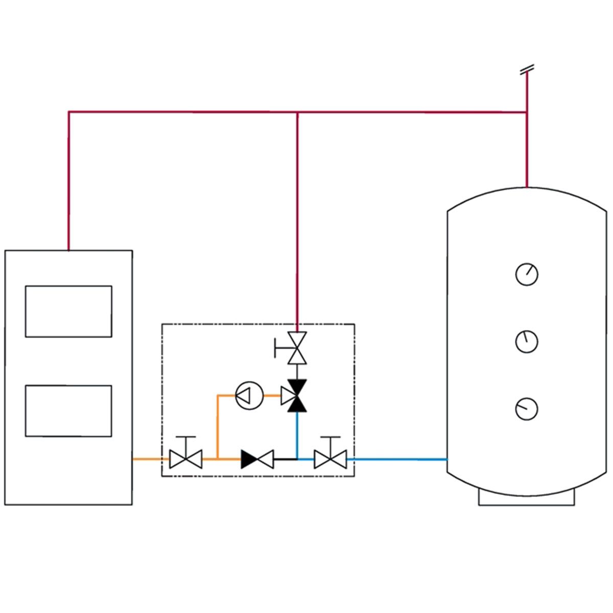 - wird eingesetzt, um eine hohe Rücklauftemperatur zum Heizkessel und eine optimale Temperaturschichtung im Pufferspeicher zu erzeugen