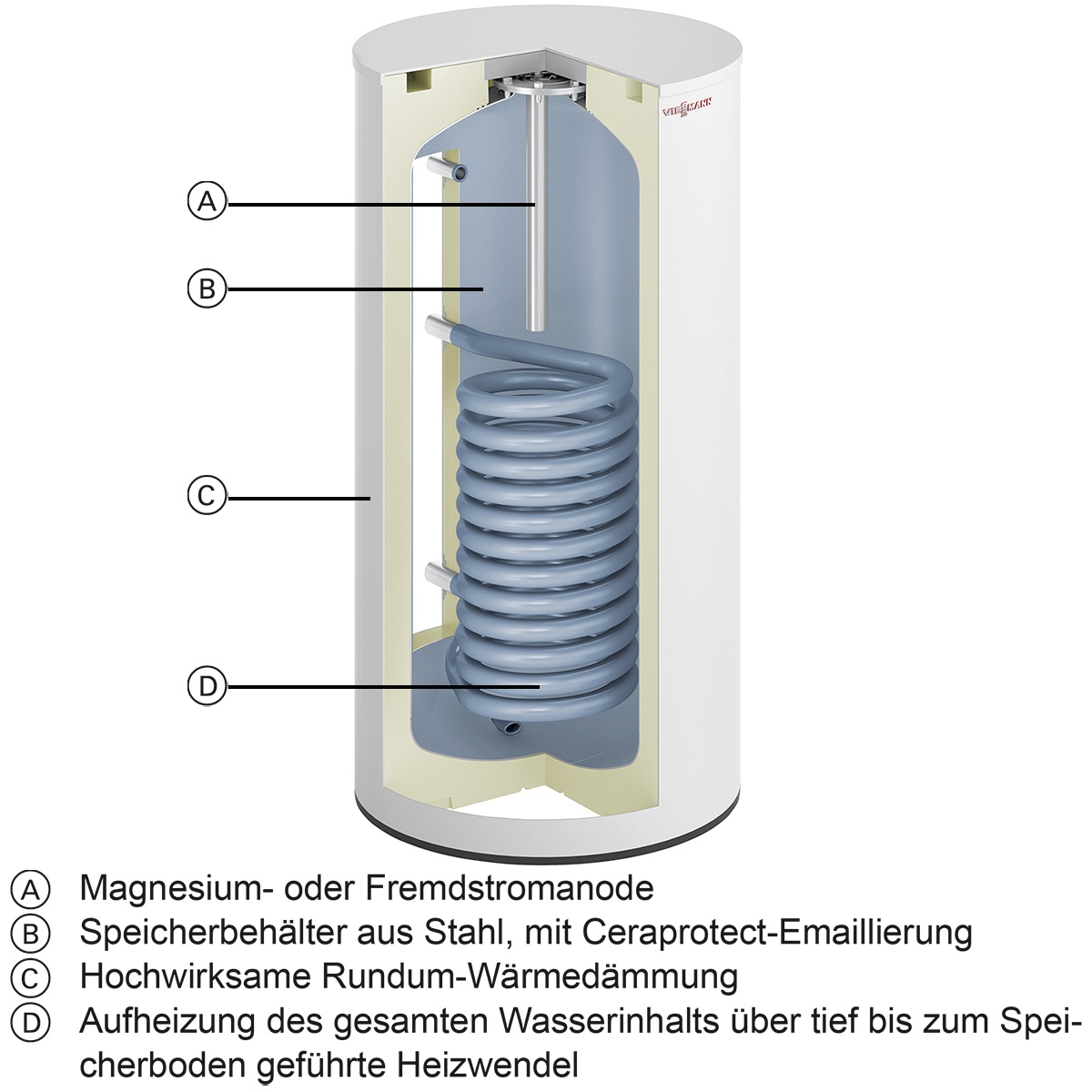 Weiterführende Links zu "Viessmann Vitocell 100-V Typ CVAA 160 Liter Speicher Warmwasserspeicher Z018464"