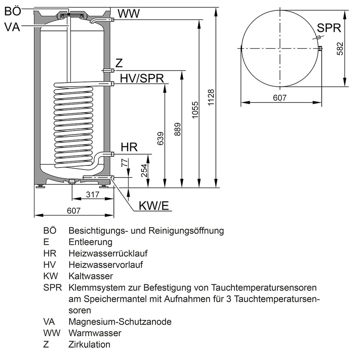 - senkrecht stehender Speicher-Wassererwärmer mit einer Heizwendel