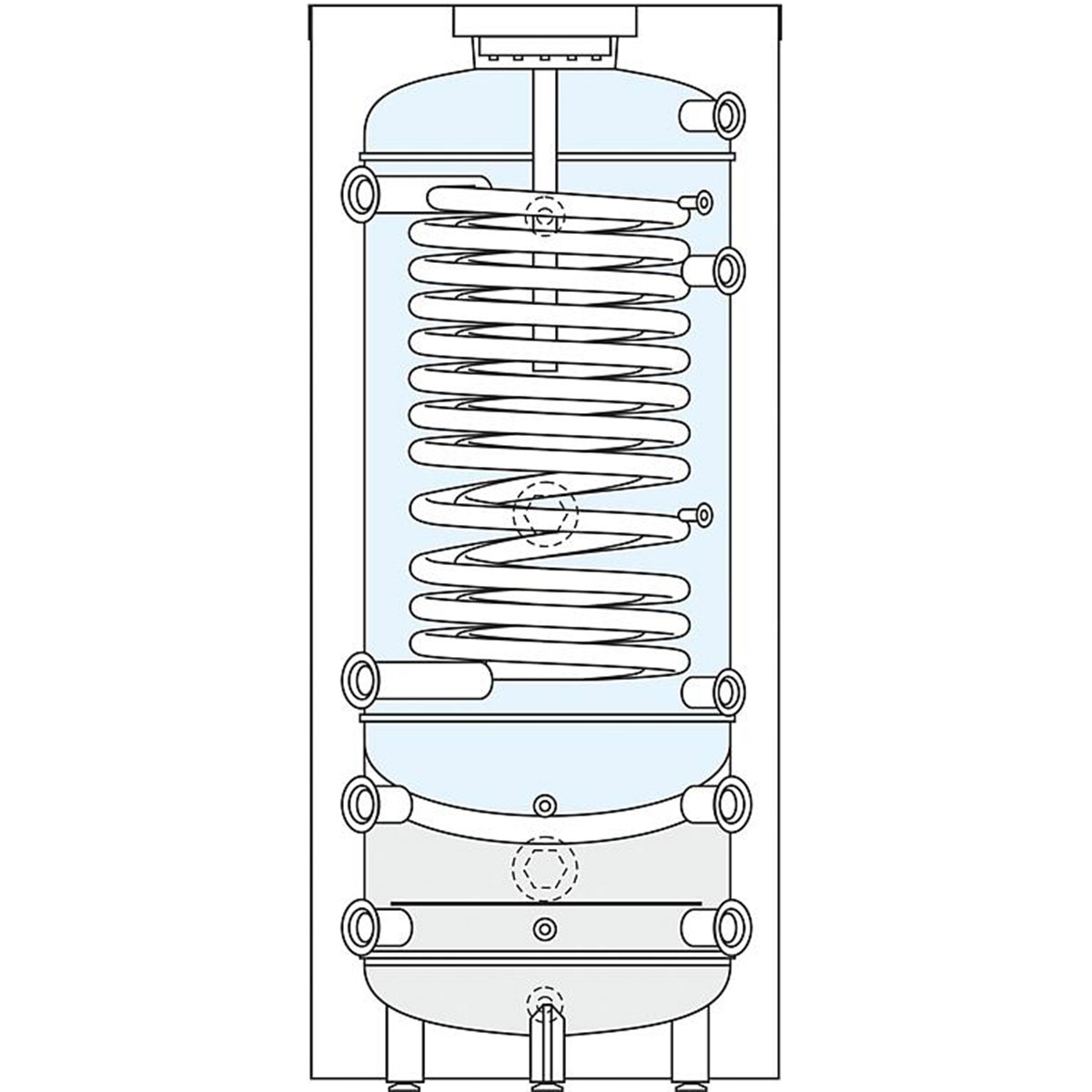 - Warmwasserspeicher mit untergebautem Pufferspeicher für den Einsatz in Wärmepumpenanlagen