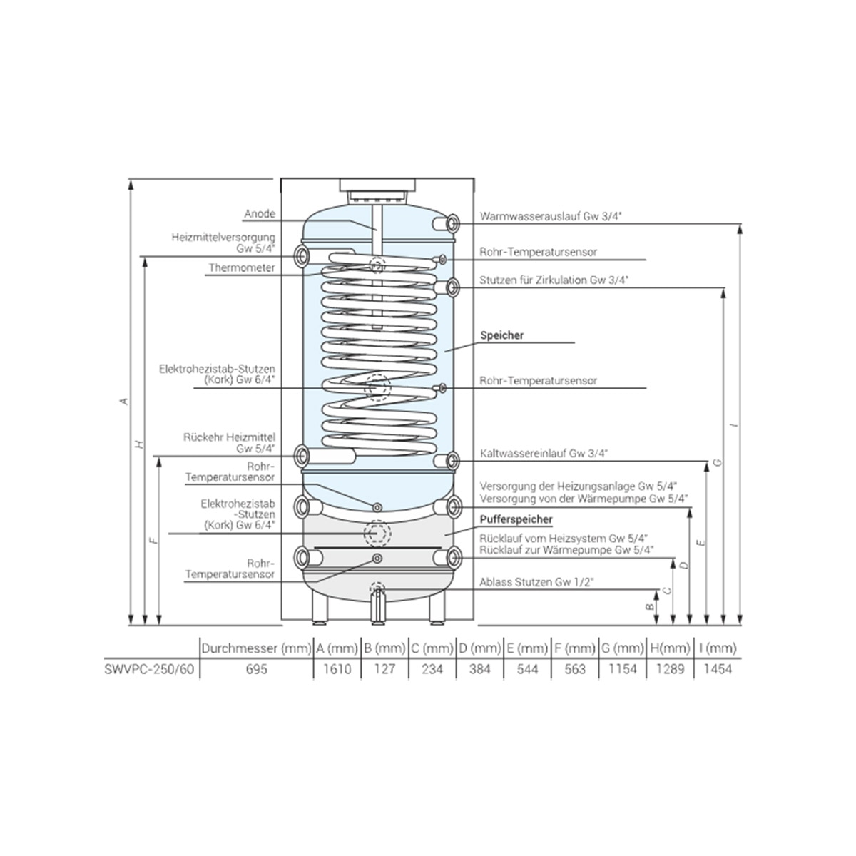 Produktinformationen "Kospel SWVPC Kombispeicher für Wärmepumpen SWVPC-250/60"