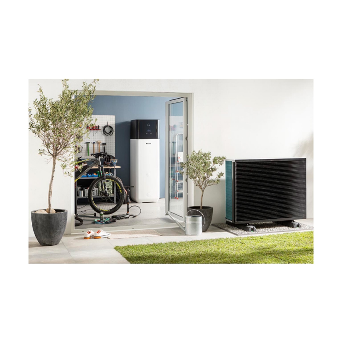 - Luft-Wasser-Wärmepumpen-Inneneinheit als Monoblock-System für das Außengerät DAIKIN Altherma 3 H HT - 14, 16 und 18 kW, mit integriertem 500 Liter Wärmespeicher für die hygienische Warmwasserbereitung im Durchlaufprinzip. Für Heizen, Kühlen und Warmwasser