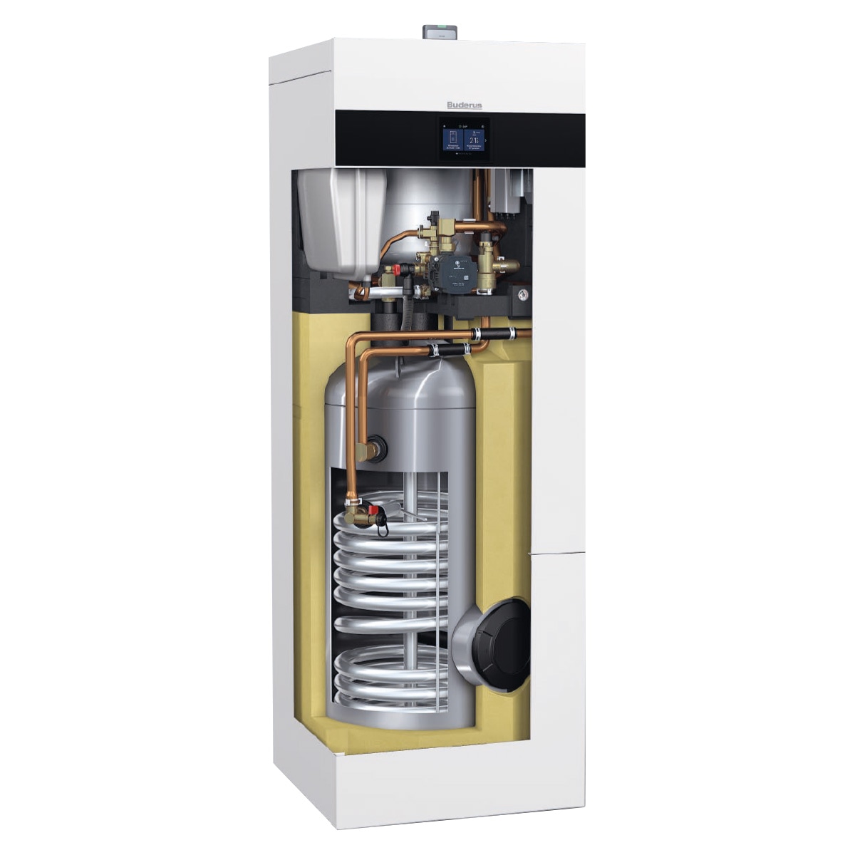 - Integrierter emaillierter Warmwasserspeicher T180 mit Magnesium-Schutzanode (Speichervolumen ohne Heizwendel 175,5 l)