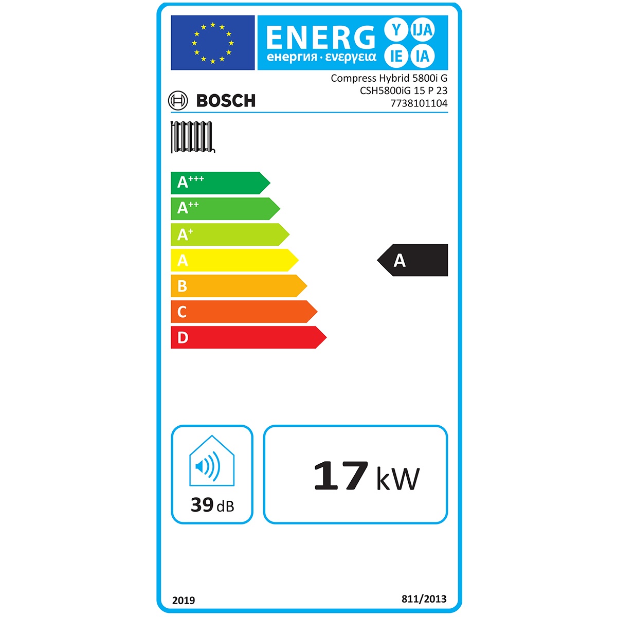 Produktinformationen "Bosch Compress Hybrid 5800iG Wärmepumpen-Hybridgerät 17kW 7738101104 mit Touch-Bedienfeld"