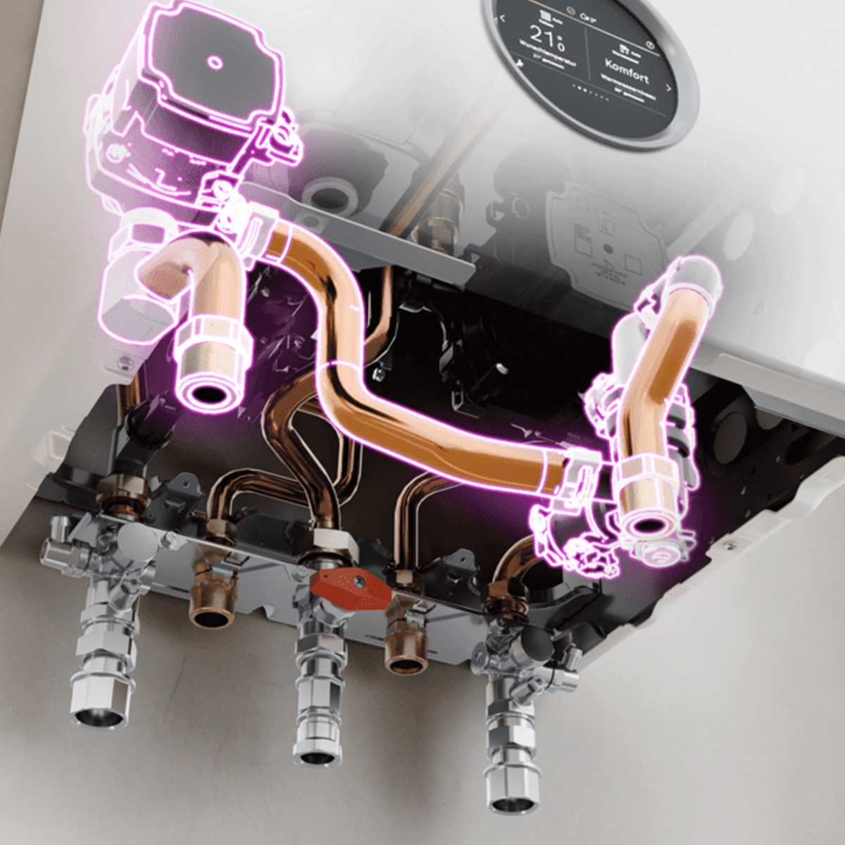 - einfacher und schneller 1:1 Gerätetausch an bereits bestehende Anschlüsse vorhandener Gas-Heizgeräte