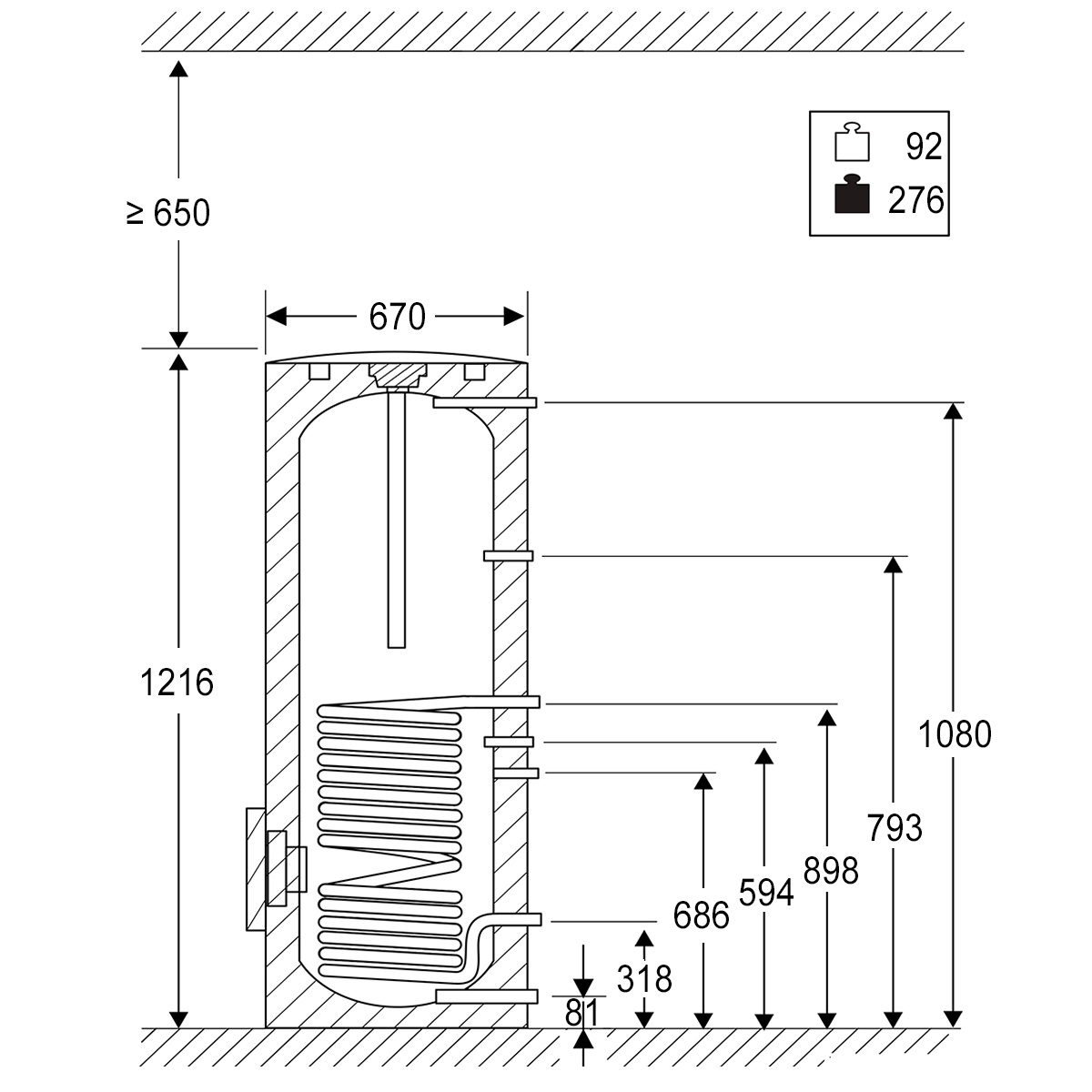 - Höhe Vorlaufanschluss Speicher: 318 mm