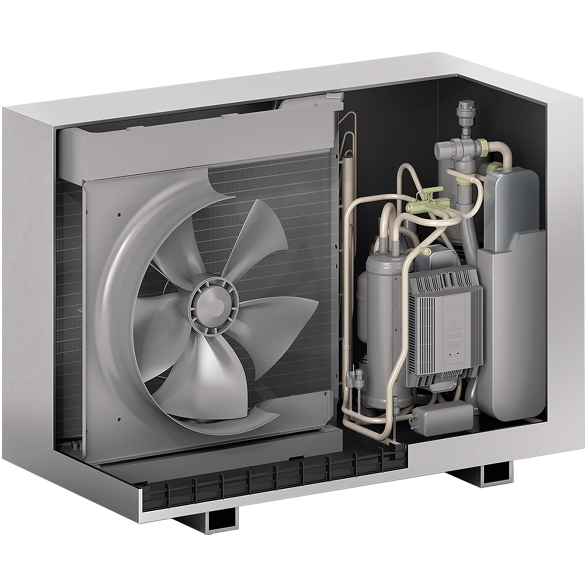 Dank DC-Inverter-Technologie passt die Wärmepumpe ihre Leistung stufenlos an den aktuellen Wärmebedarf an. Das sorgt für hohe Effizienz im Teillastbetrieb, niedrige Betriebskosten und einen ruhigen, gleichmäßigen Anlagenbetrieb – sowohl im Neubau als auch bei der Heizungsmodernisierung.