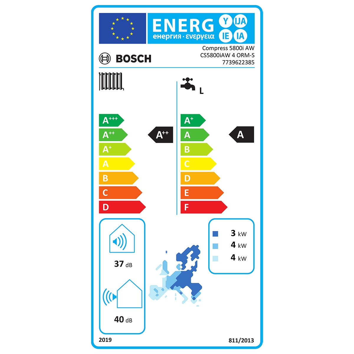 Produktinformationen "Bosch Compress 5800iAW 7739622385 Luftwärmepumpen-Paket 4,0kW BOPA CS761 Speicher 180L"