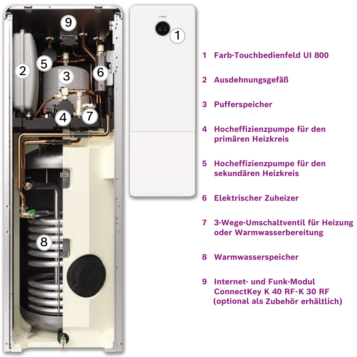 Weiterführende Links zu "Bosch Compress 5800iAW 7739622385 Luftwärmepumpen-Paket 4,0kW BOPA CS761 Speicher 180L"