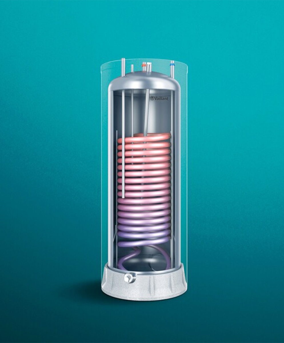 - Emaillierter Warmwasserspeicher mit Wärmedämmung