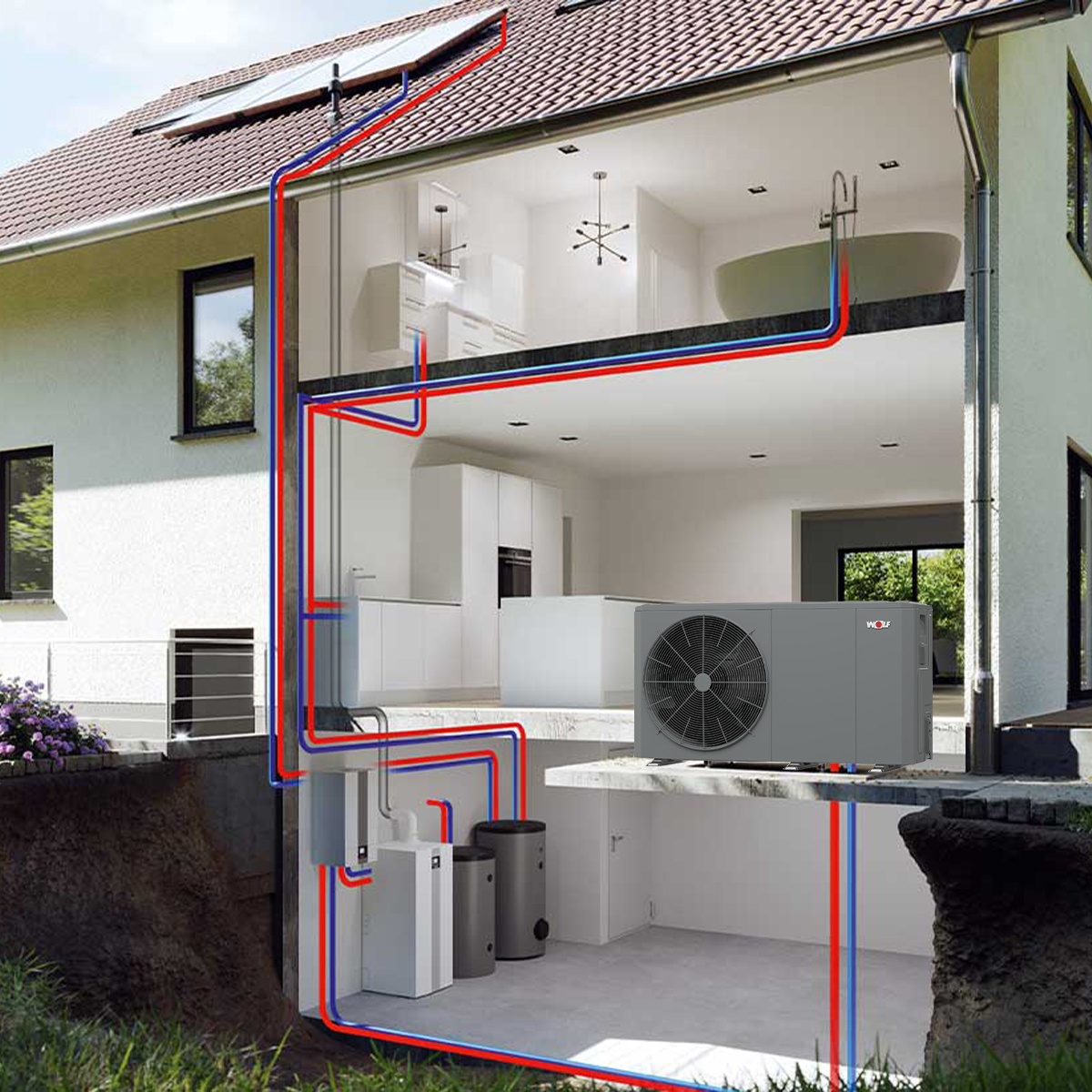 - Großes Leistungsspektrum - vom kleinen energieeffizienten Anlage mit 5 kW bis zum gewerblichen Einsatz in größeren Projekten mit bis zu 70 kW in Kaskade