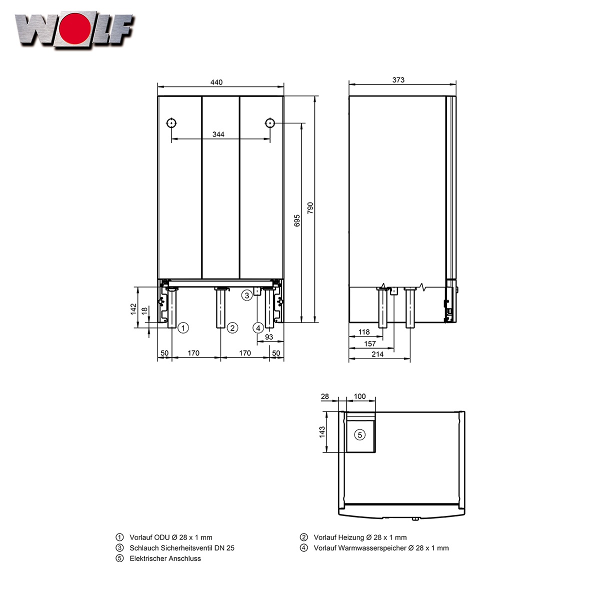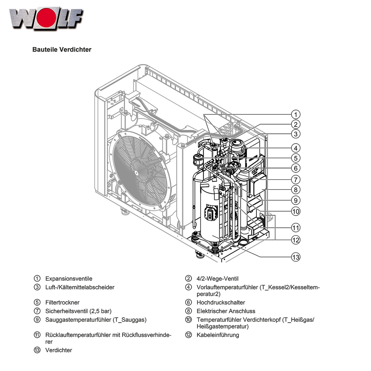 - Aufstellung der Außeneinheit und Sicherheitsabstände gemäß der WOLF Montage- und Bedienungsanleitung