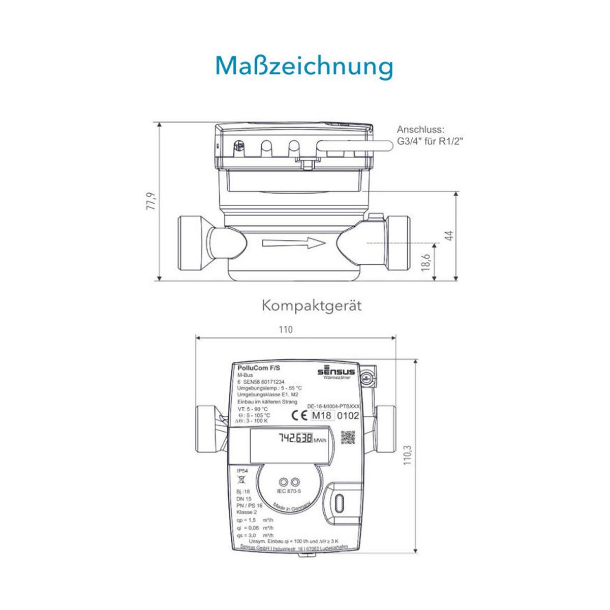 Produktinformationen "Sensus PolluCom F PEFA005A Wärmezähler Kältezähler Kompaktzähler Qn 0,6 AG 3/4" inkl. Eichung"