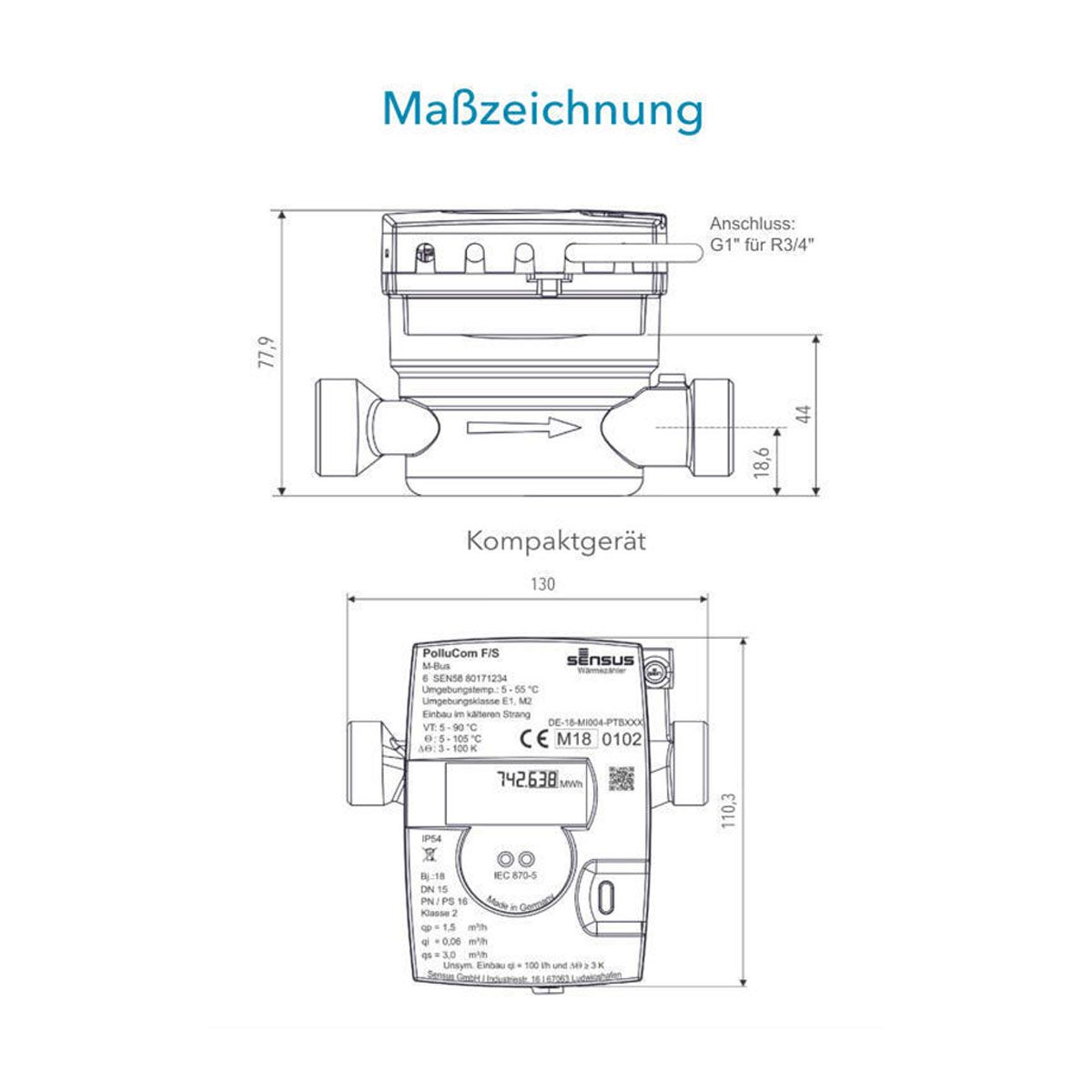 Produktinformationen "Sensus PolluCom F PEFC005A Wärmezähler Kältezähler Kompaktzähler Qn 2,5 AG 1" inkl. Eichung"