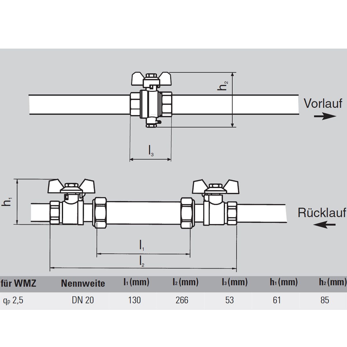 Weiterführende Links zu "Einbauset Wärmemengenzähler Kugelhähne 3/4" x 1" und 3/4" Rohrnippel 1" x 130 mm"