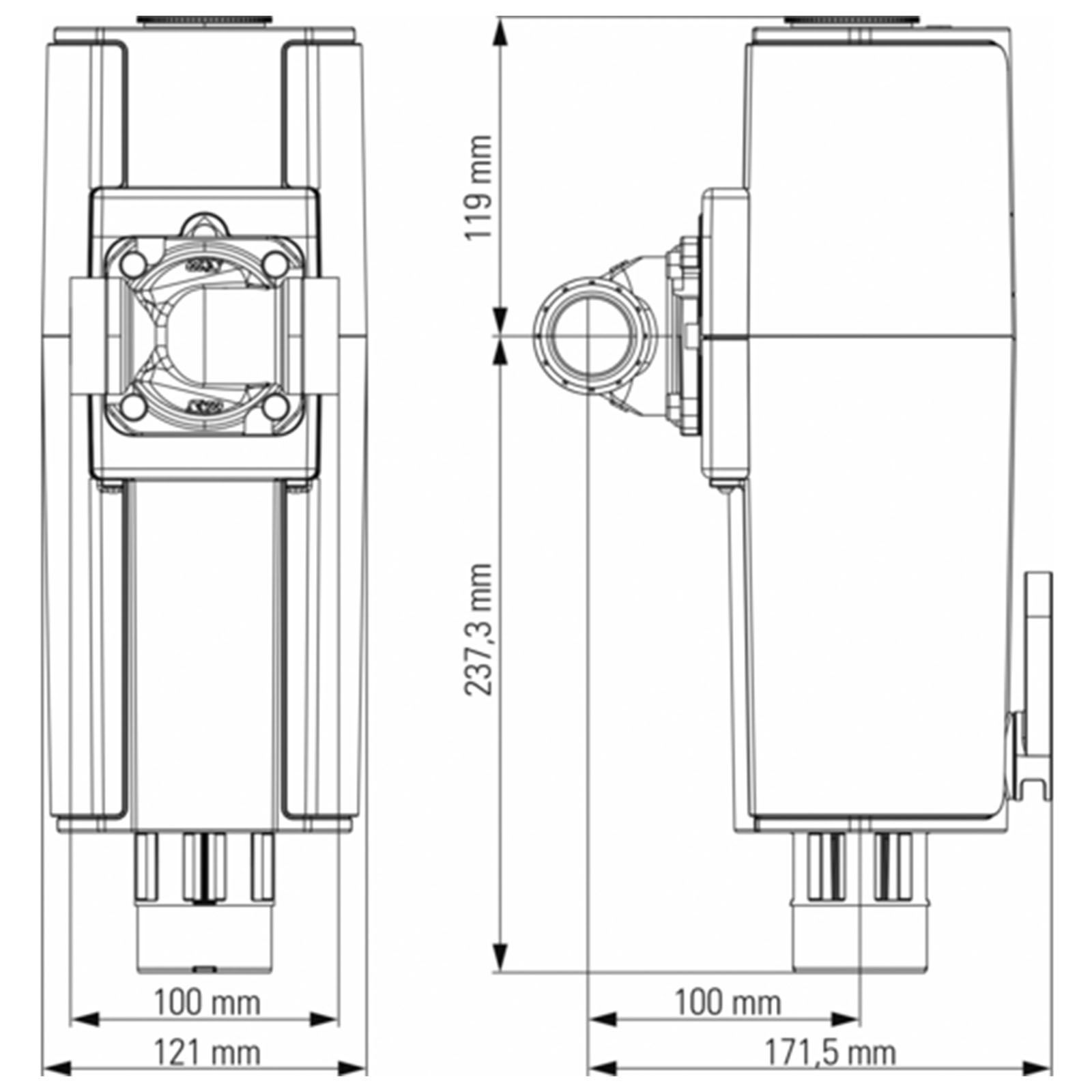 - Durch die integrierte Bauform ergibt sich eine besonders kurze Baulänge, so dass der Einbau auch bei beengten Platzverhältnissen möglich ist