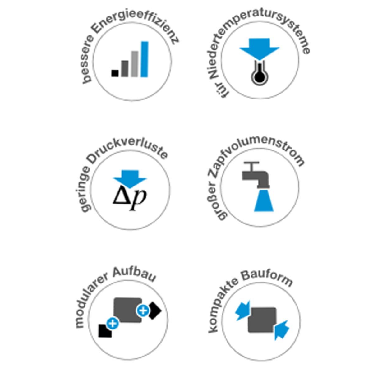 - der Leistungsbereich für den Zapfvolumenstrom wird bei einer mit 5K über der Zapftemperatur eingestellten Heizwasservorlauftemperatur erreicht