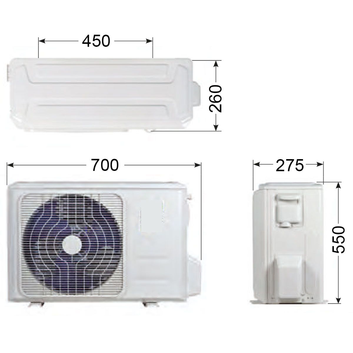 - Außengerät kann individuell aufgestellt werden, auf dem Boden, an der Wand, auf dem Dach oder in gut belüfteten Räumen