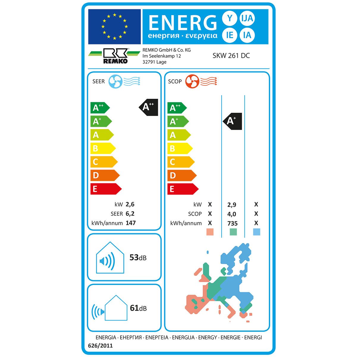 Produktinformationen "Remko Hitline SKW 261 DC Klima Paket Klimaanlage 2,6kW Mono Split 1648261 Innen- u. Außengerät"