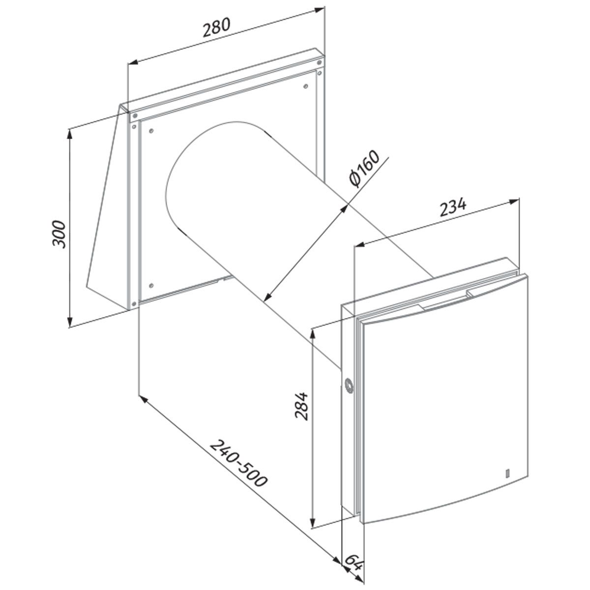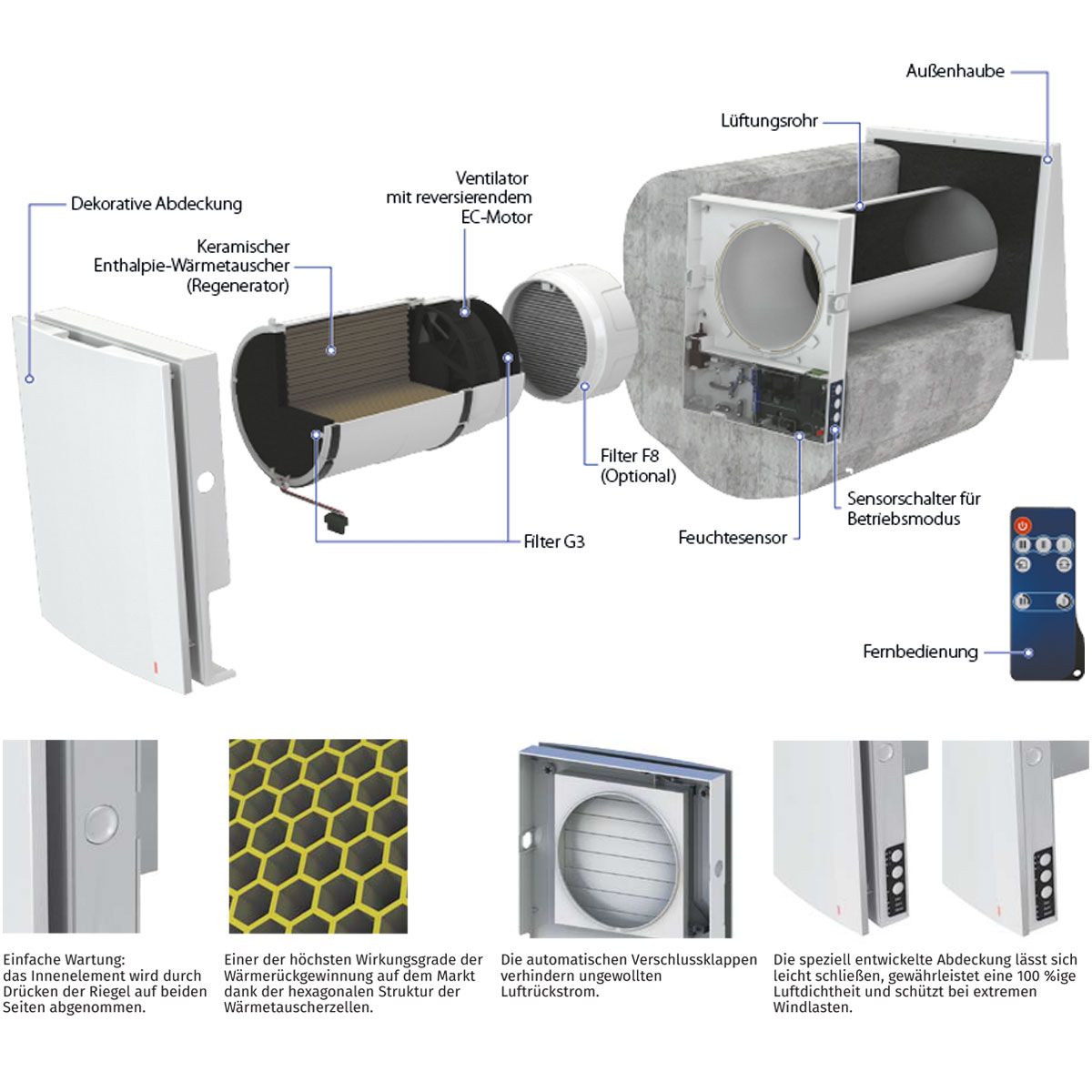 - Einbau in eine Kernlochbohrung durch die Außenwand des Gebäudes konstruiert