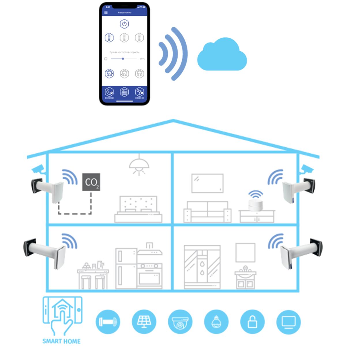 - die Lüftungsanlage wird über eine App auf einem Smartphone oder Tablet gesteuert