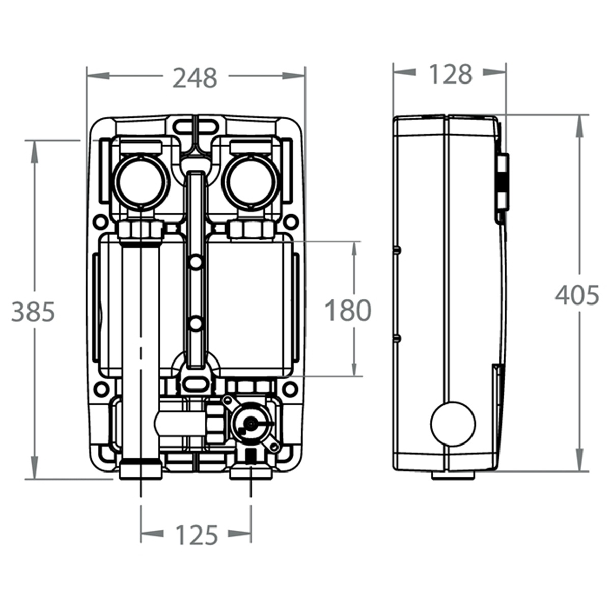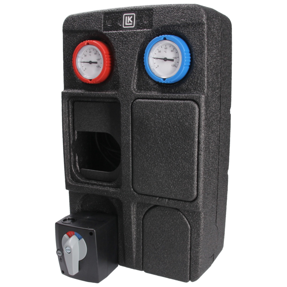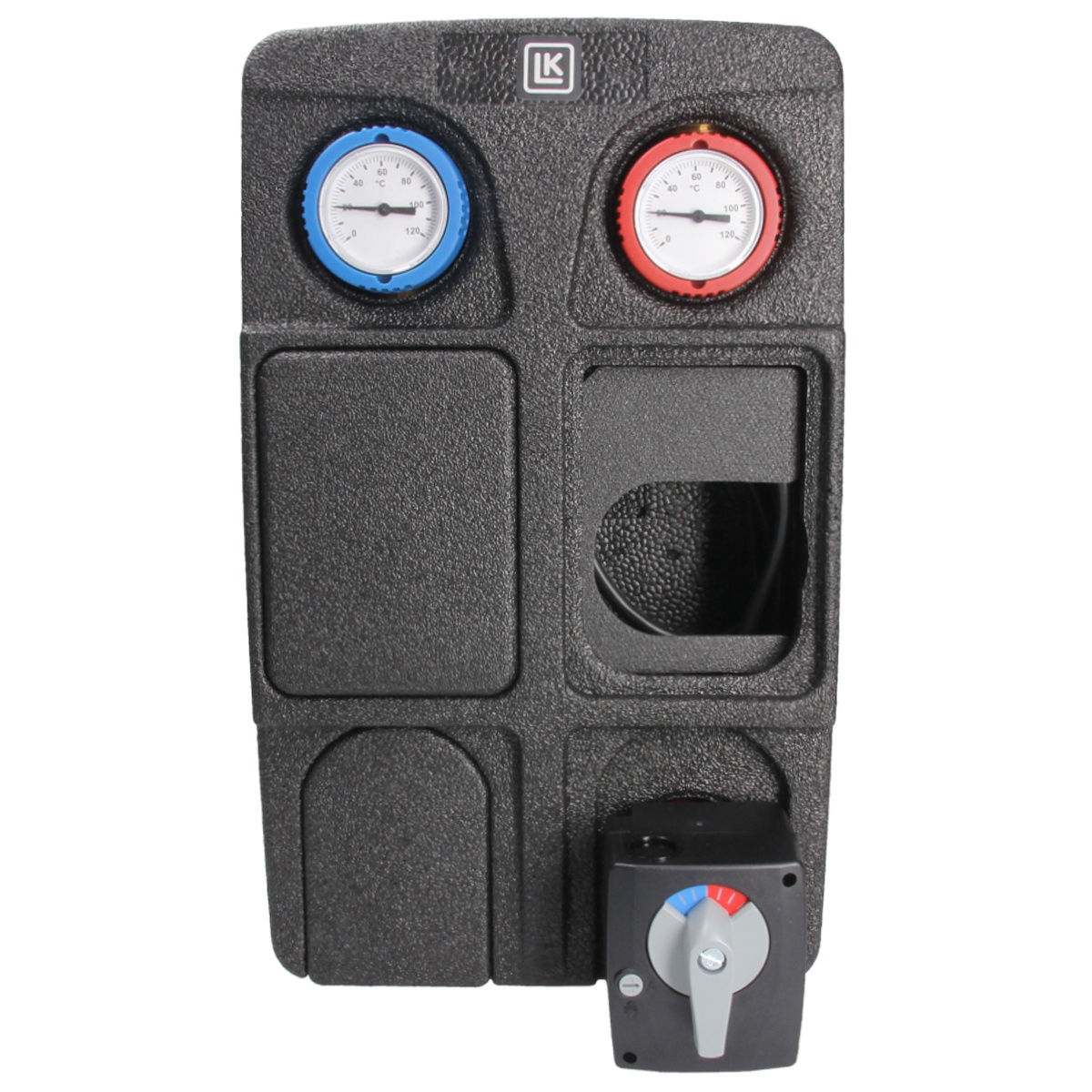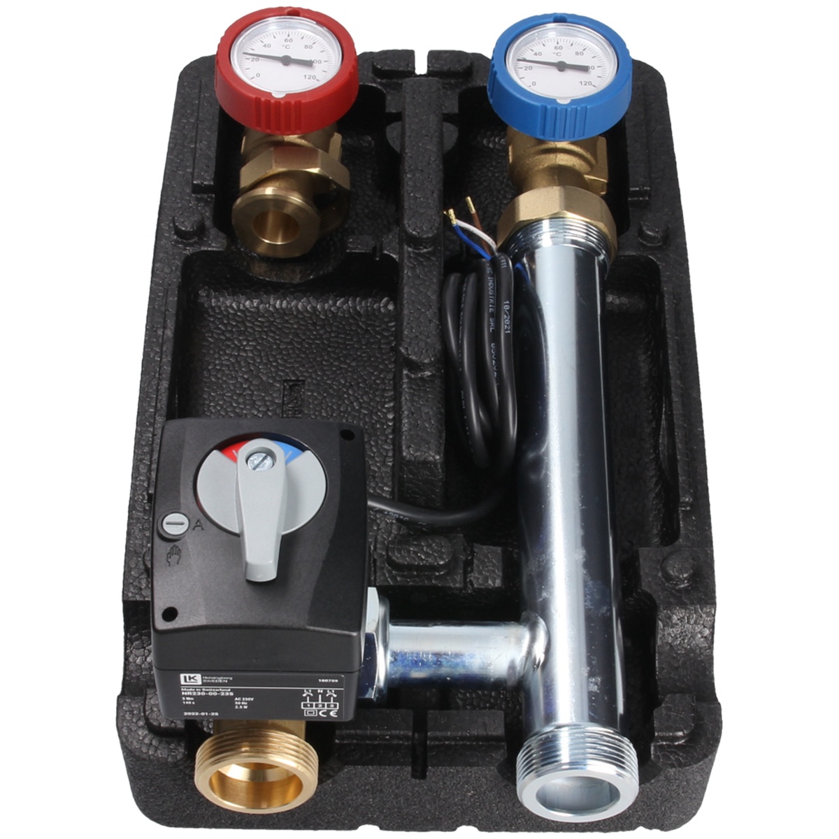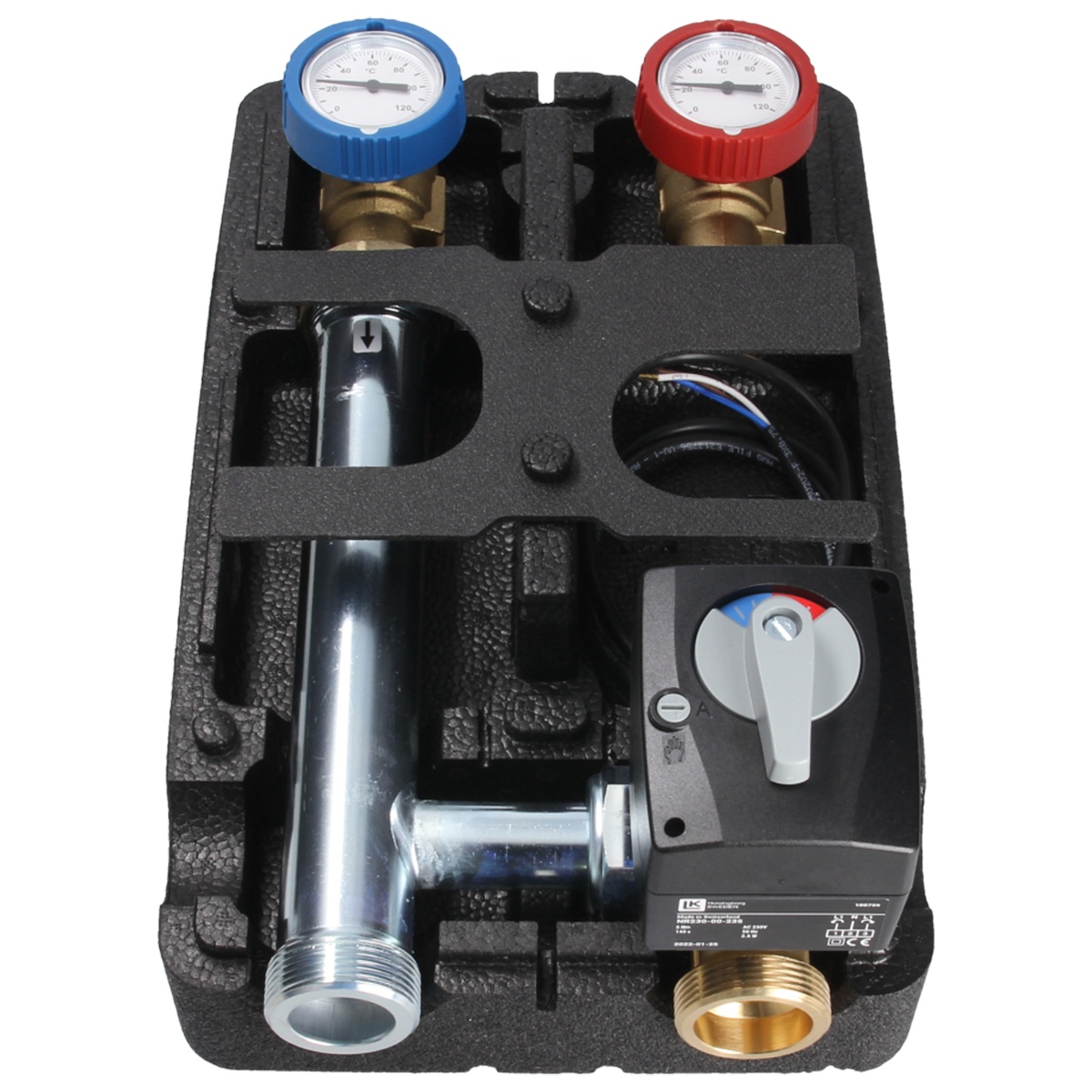 - besteht aus: 3-Wege-Mischer, Isolierung, Konsole für die Wandmontage sowie zwei Kugelventilen mit Thermometer
