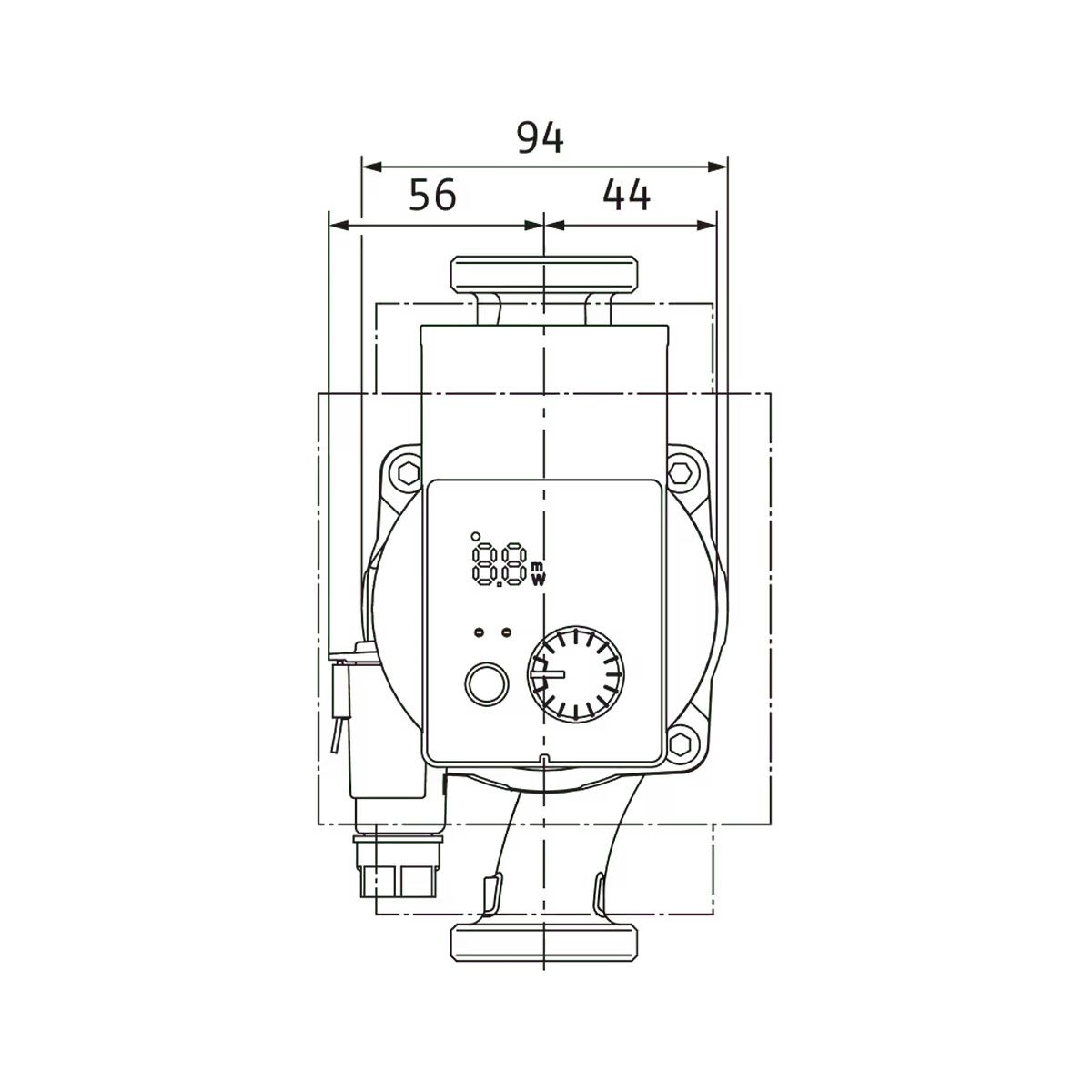 - LED-Anzeige zum Einstellen des Sollwerts, Anzeige des laufenden Verbrauchs in Watt und des Durchflusses in m³/h