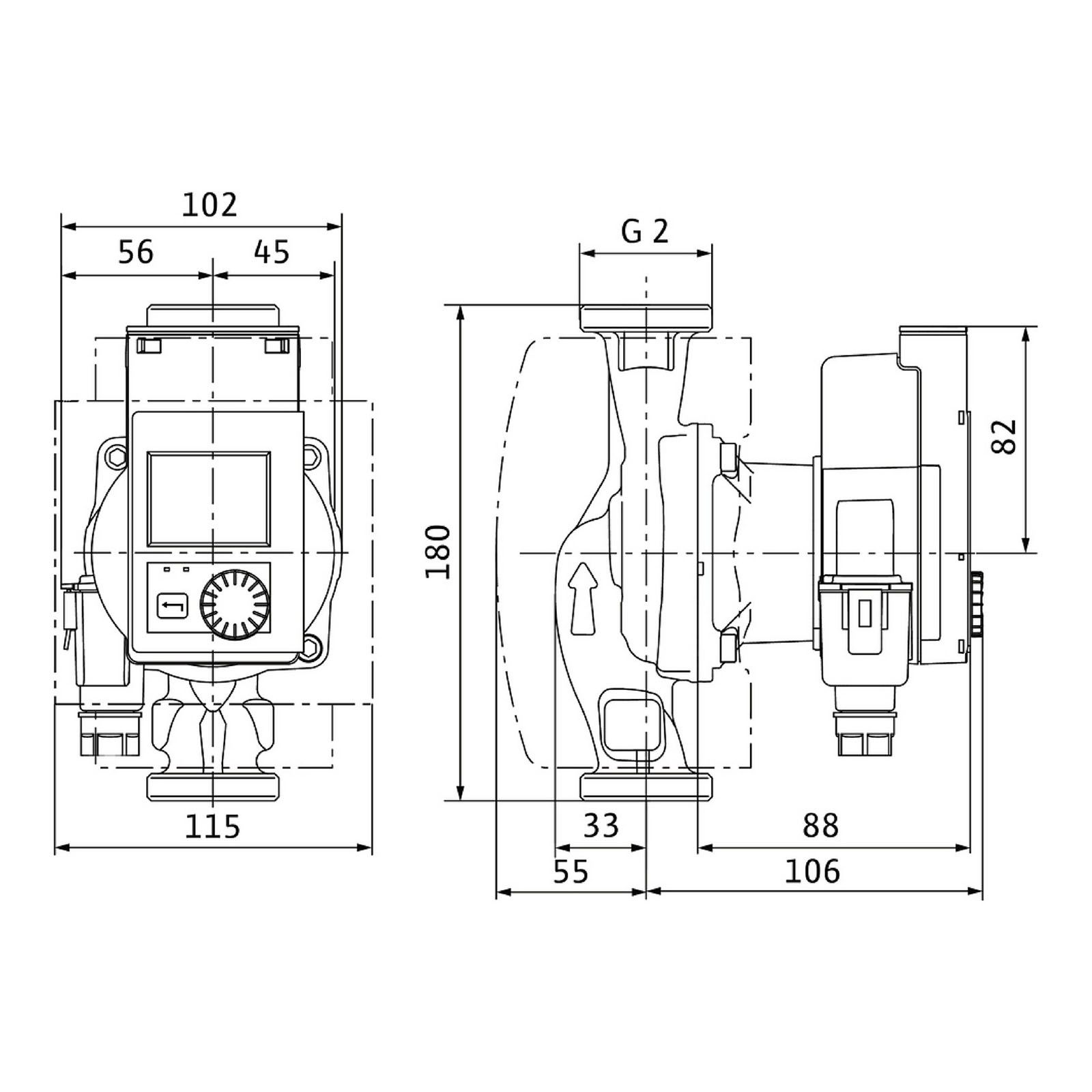 - Druckseitiger Rohranschluss: G 2