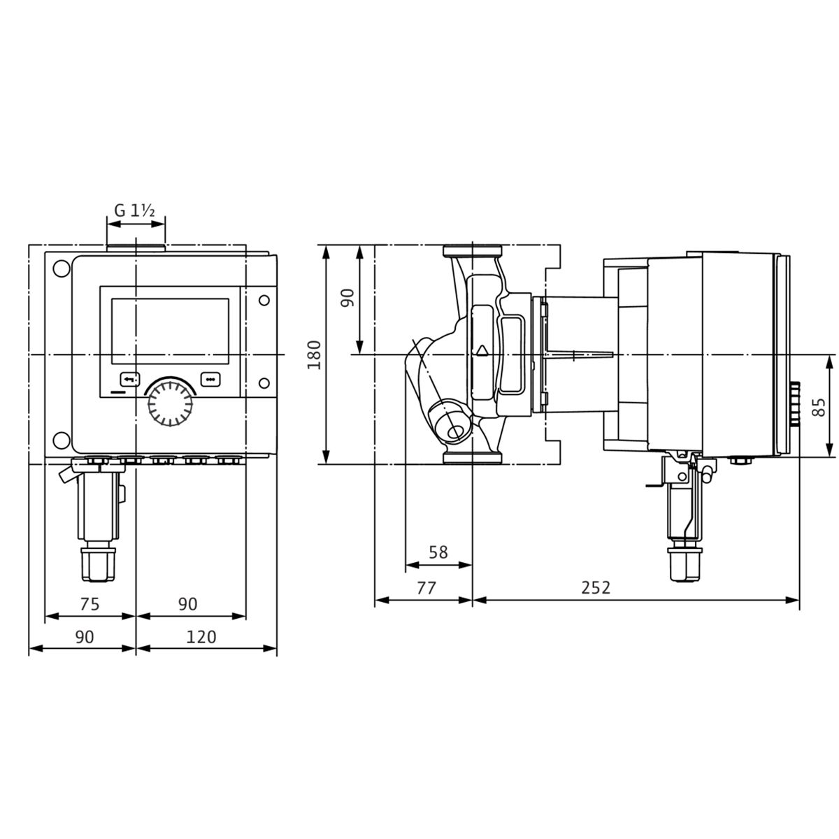 - Druckseitiger Rohranschluß: G 1½