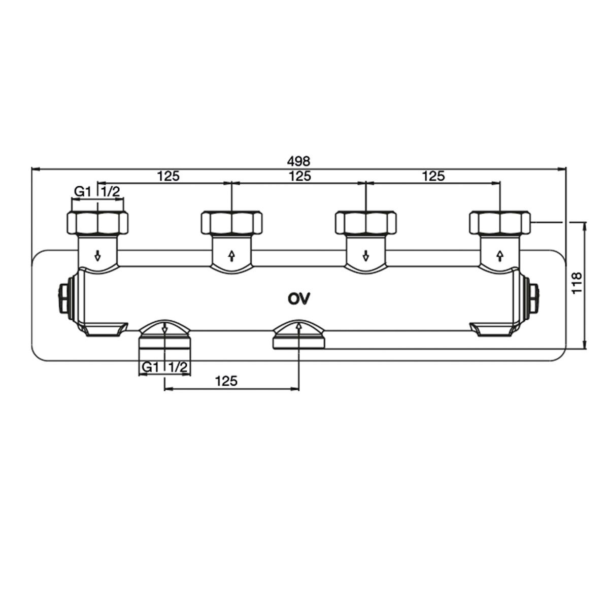 - 1 x Verteilerbalken für 2 Heizkreise DN 25