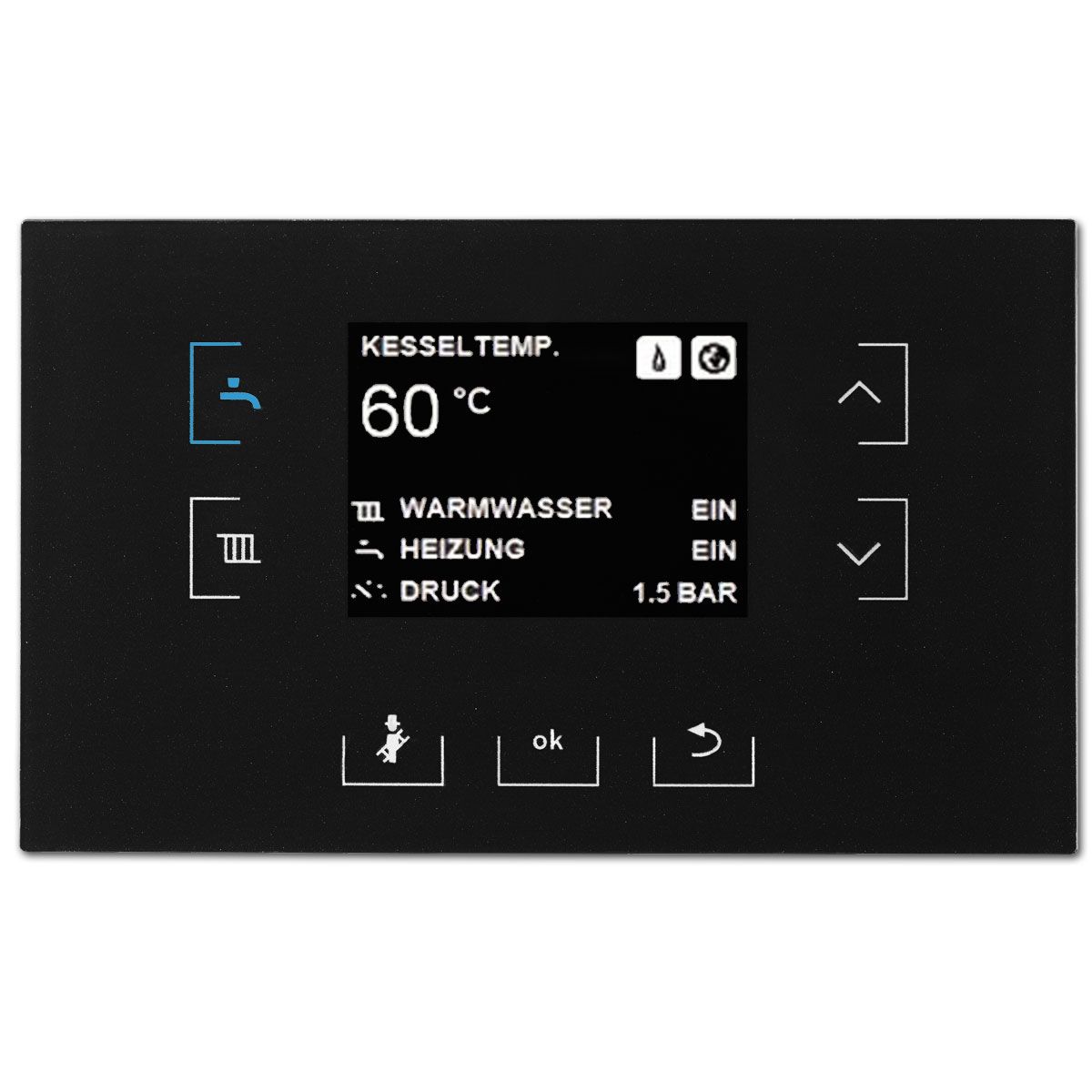 - einfache Grundbedienung der Kesselfunktionen über Touchkeys mit kontextbezogener Ein-/Ausblendung der Bedientasten