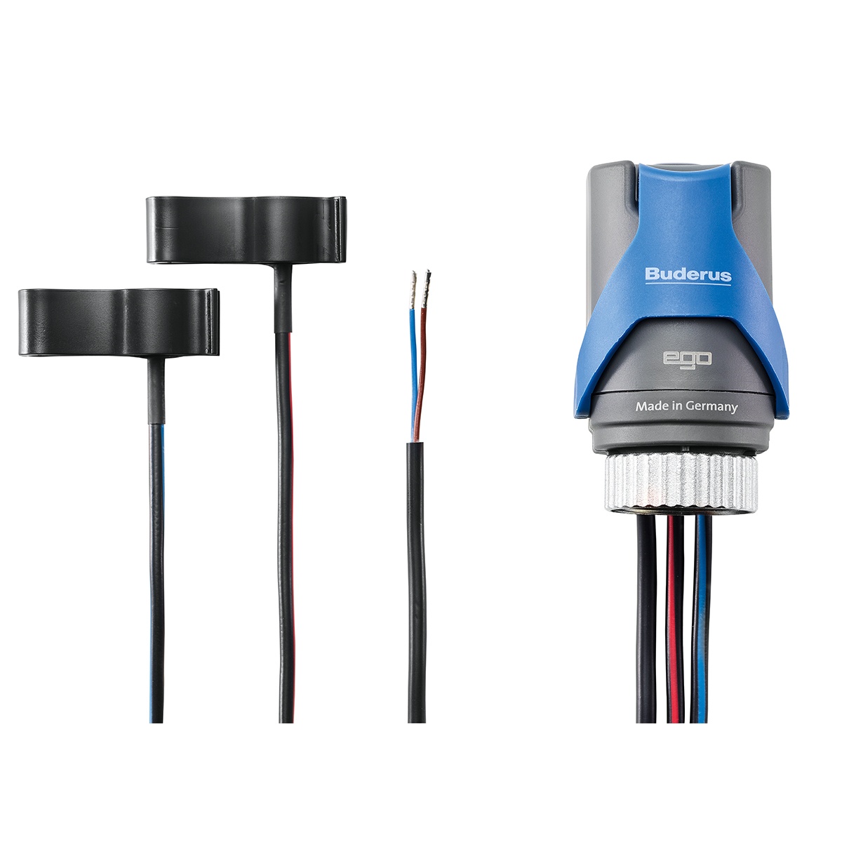 - Sensorleitung Rücklauf: Flexibel, schwarz mit blauem Streifen, 0,4 m, 2 x 0,22 mm2 fest verdrahtet