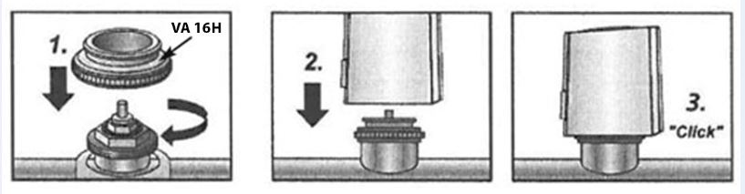 - zunächst wird der Adapter VA16H per Hand auf das Ventil aufgeschraubt